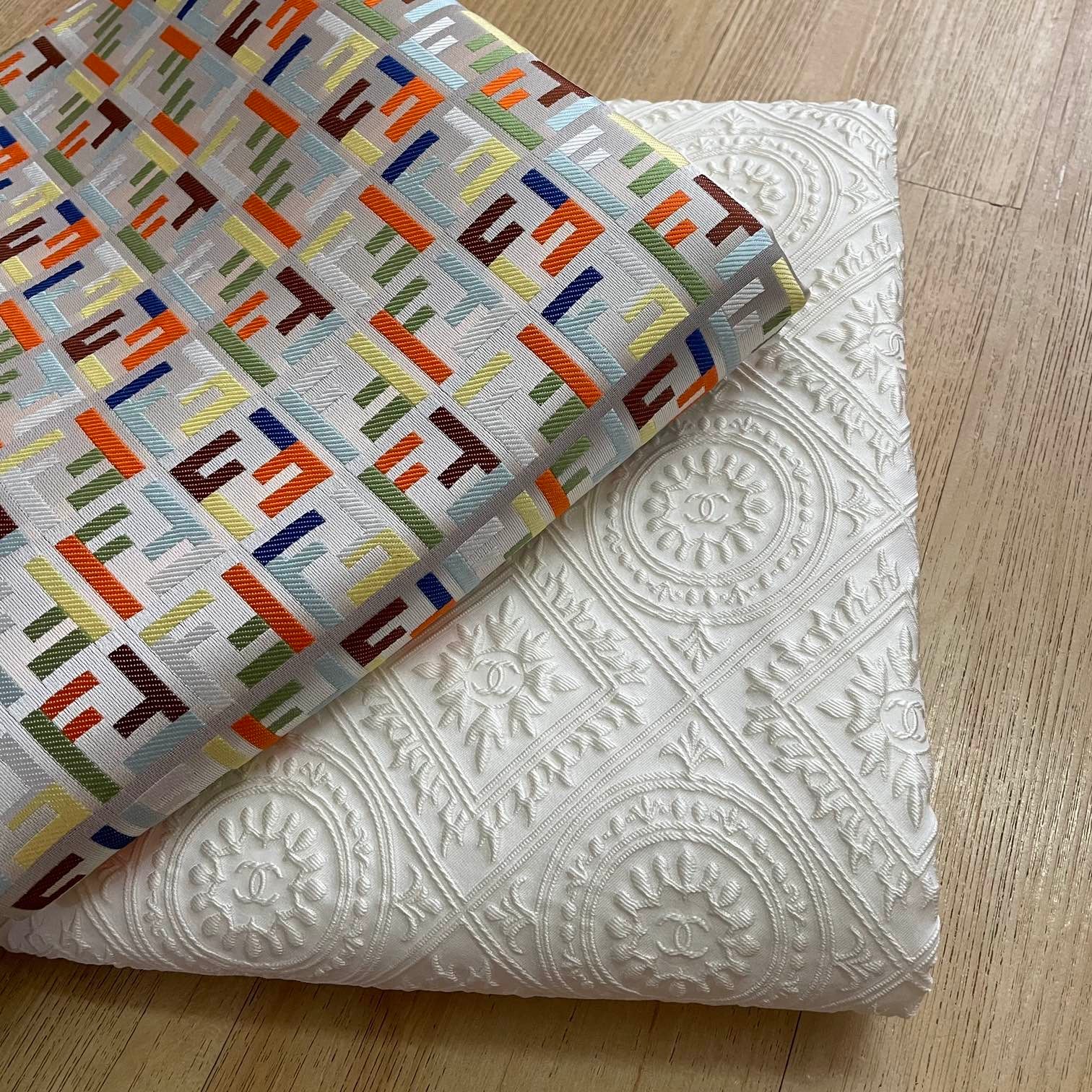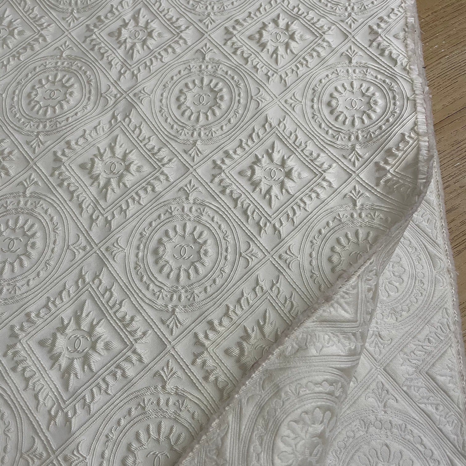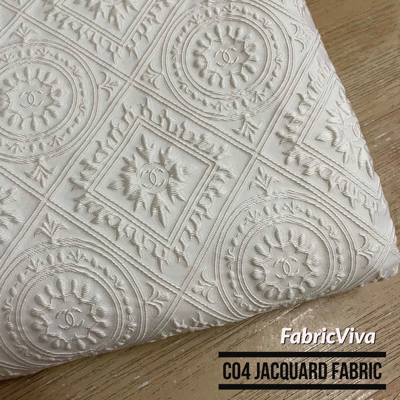 Designer inspired Jacquard fabric CC monogram 3D Pearl White, medium to thick, suitable for clothing and upholstery, ideal for jacket, dress, home decor, sofa, cushion....