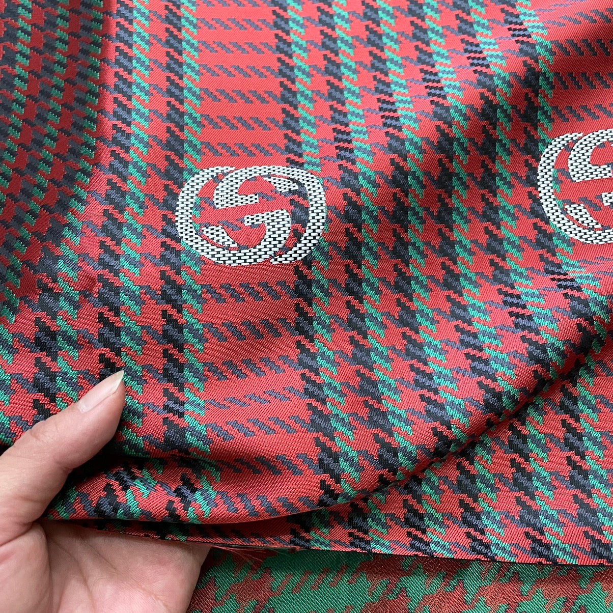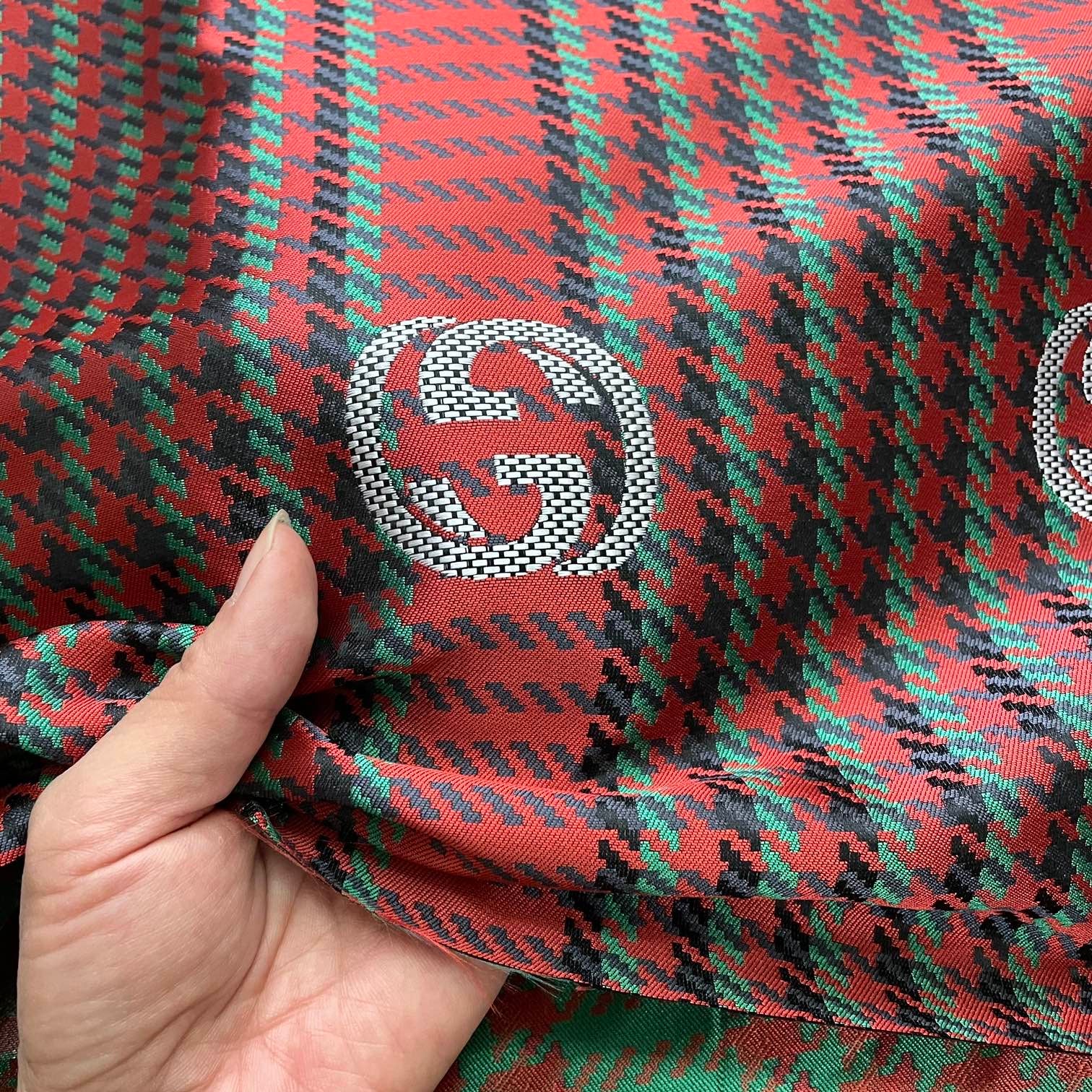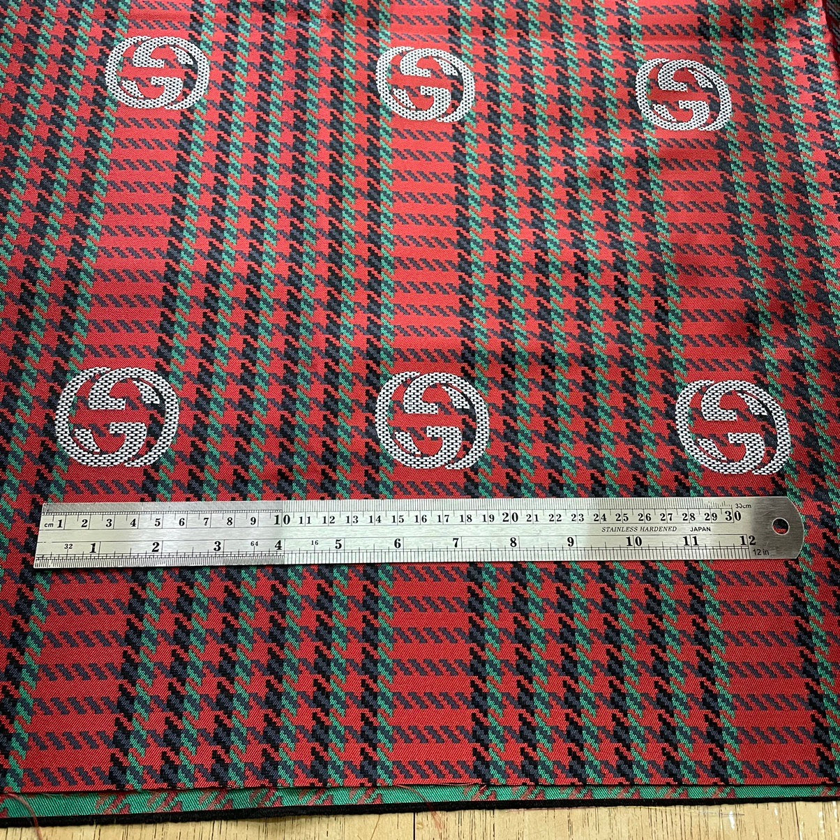 Designer inspired GG Jacquard fabric Plaid Red Green, light to medium thickness, suitable for clothing and crafting, ideal for dress, jacket, suit, mask, home decor, cushion, curtain, table clothes ...