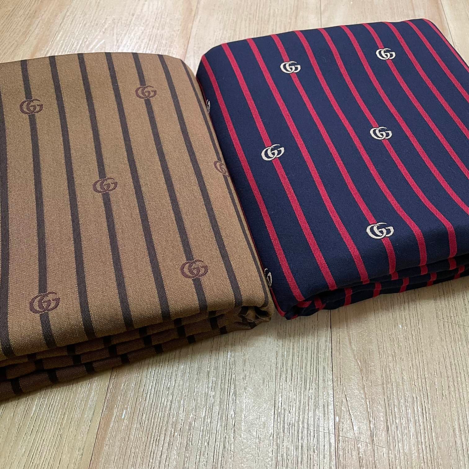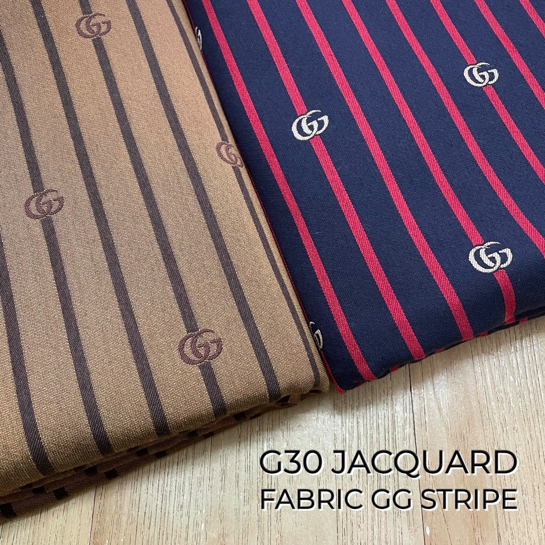 Designer inspired GG Jacquard Stripe fabric, 2 colours options : Taupe/brown and Black/Red, medium thickness, comfort touching, suitable for clothing and upholstery, ideal for suit, pants, jacket, dress, mask, curtain, cushions....