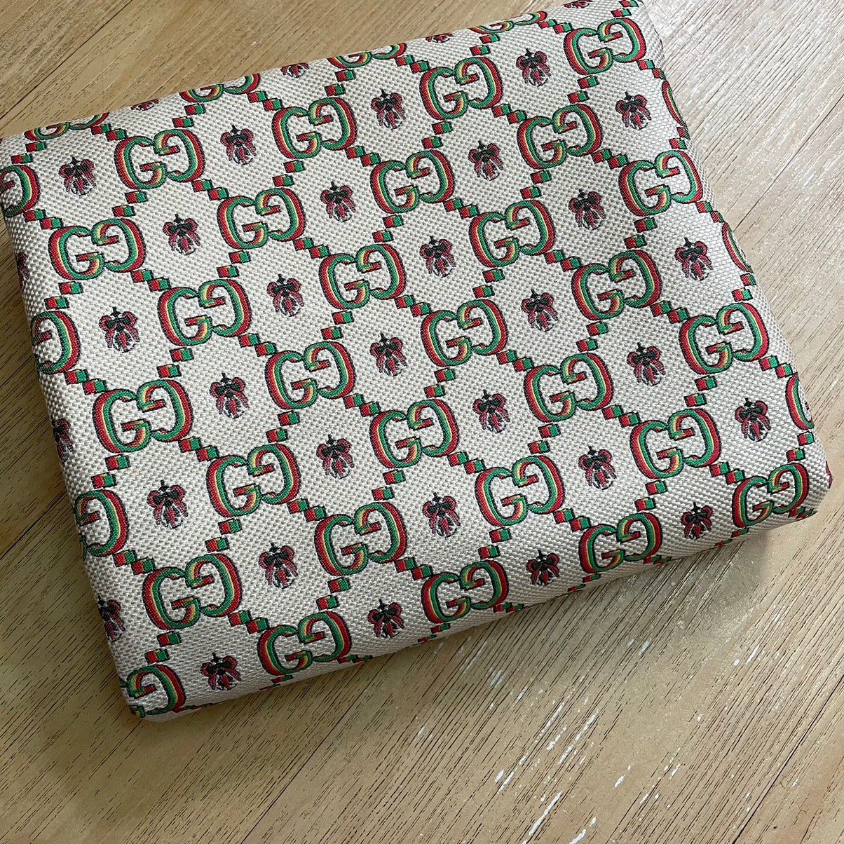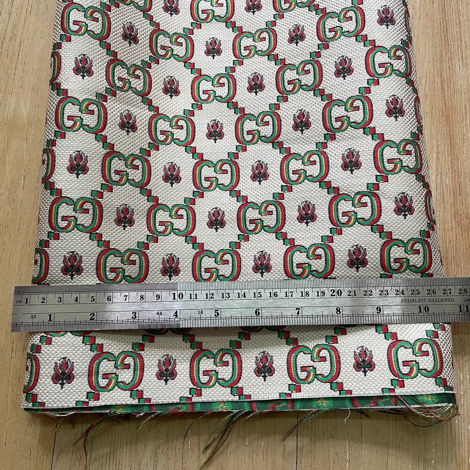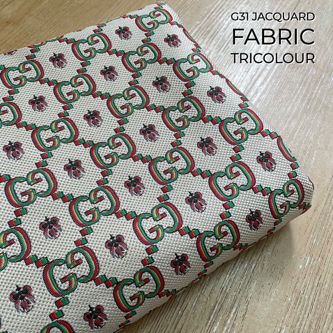 Designer inspired Gucci Jacquard Fabric Tricolour on Beige large GG monogram, thick and high density, suitable for clothing and upholstery, ideal for coat, suit, jacket, pant, mask, sofa, cushion, curtain.....