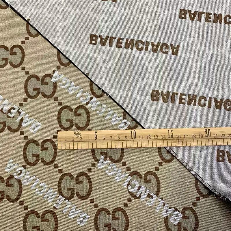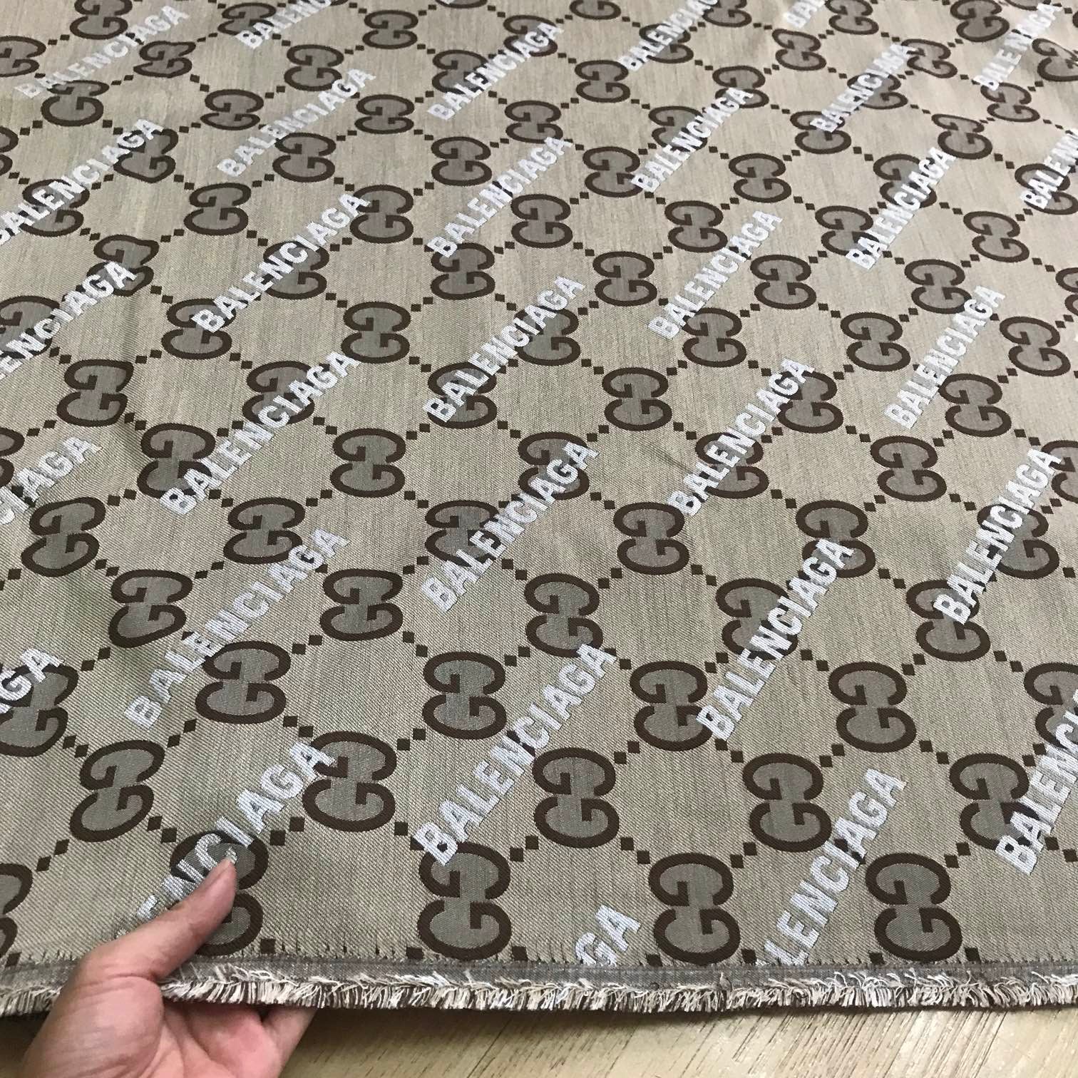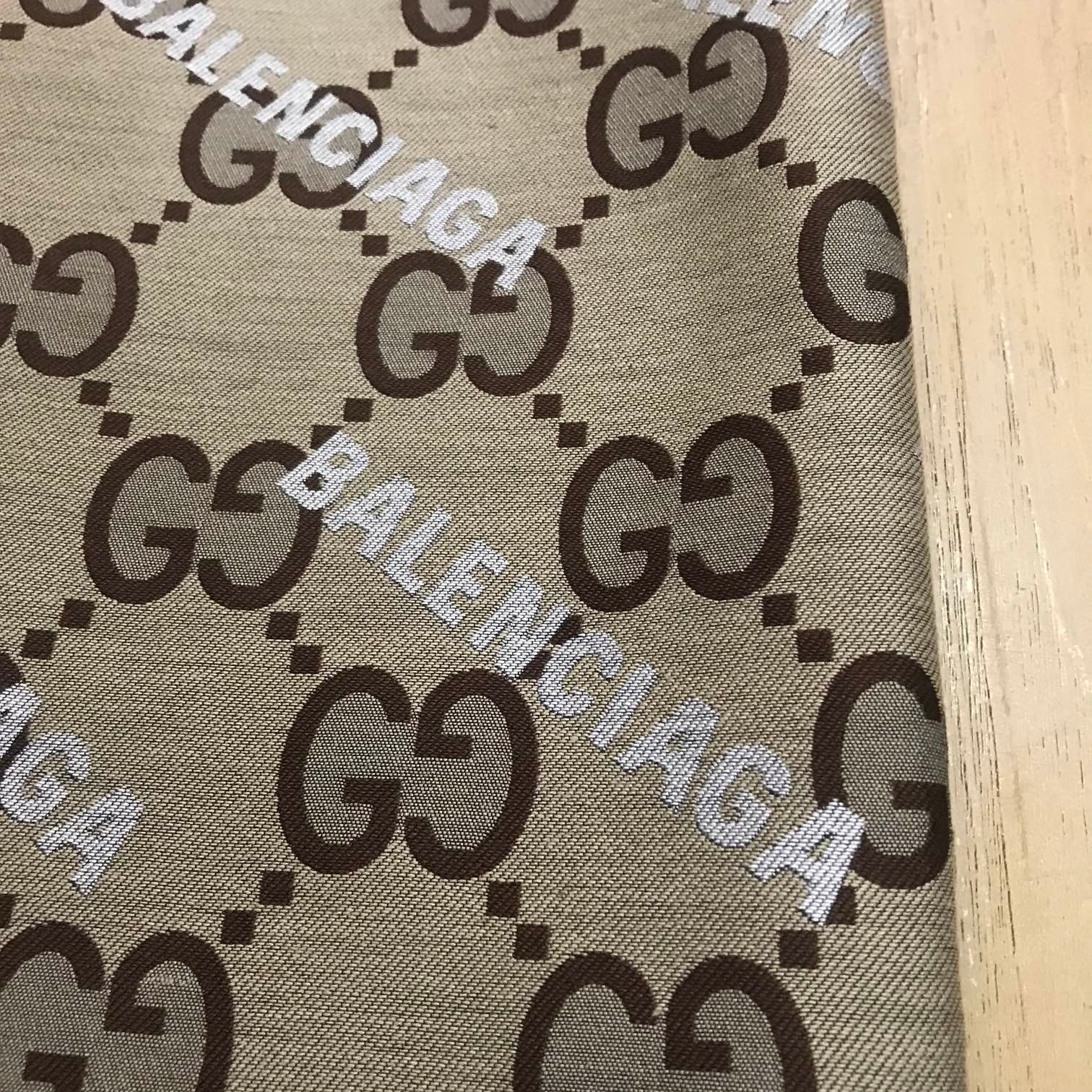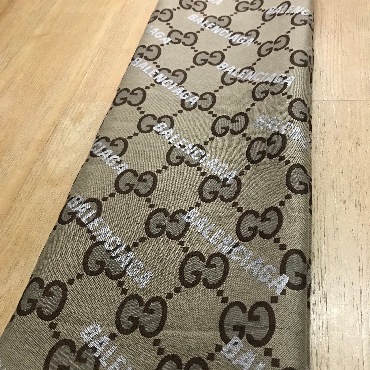 Designer inspired Gucci x Balenciaga Jacquard Fabric Khaki colour, medium to thick, suitable for clothing and upholstery, ideal for coat, suit, jacket, pant, mask, custom fashion, sofa, cushion, curtain.....