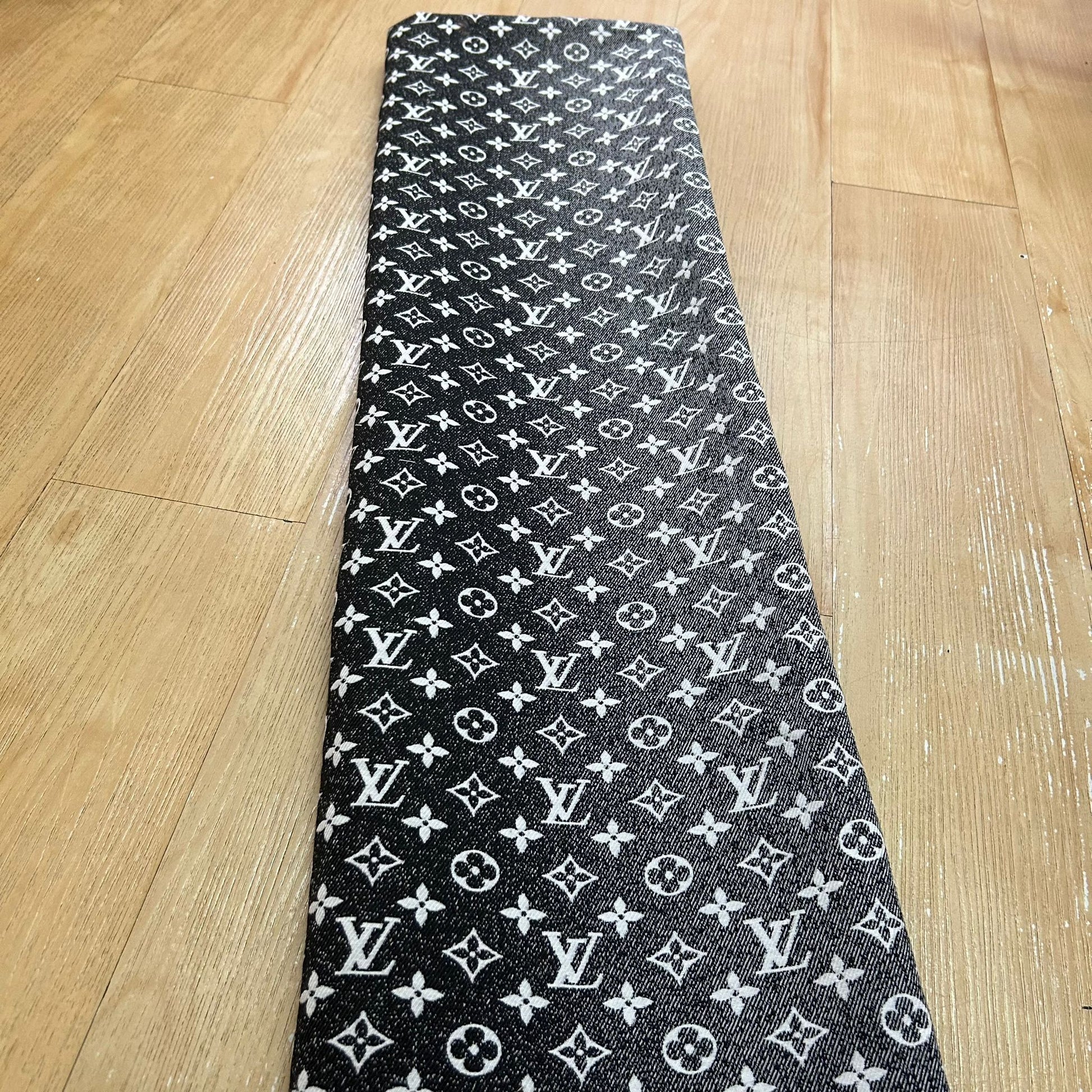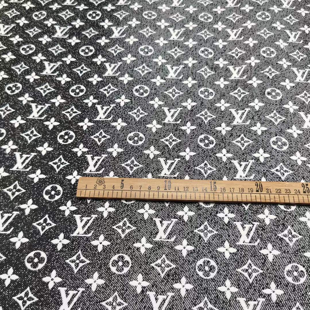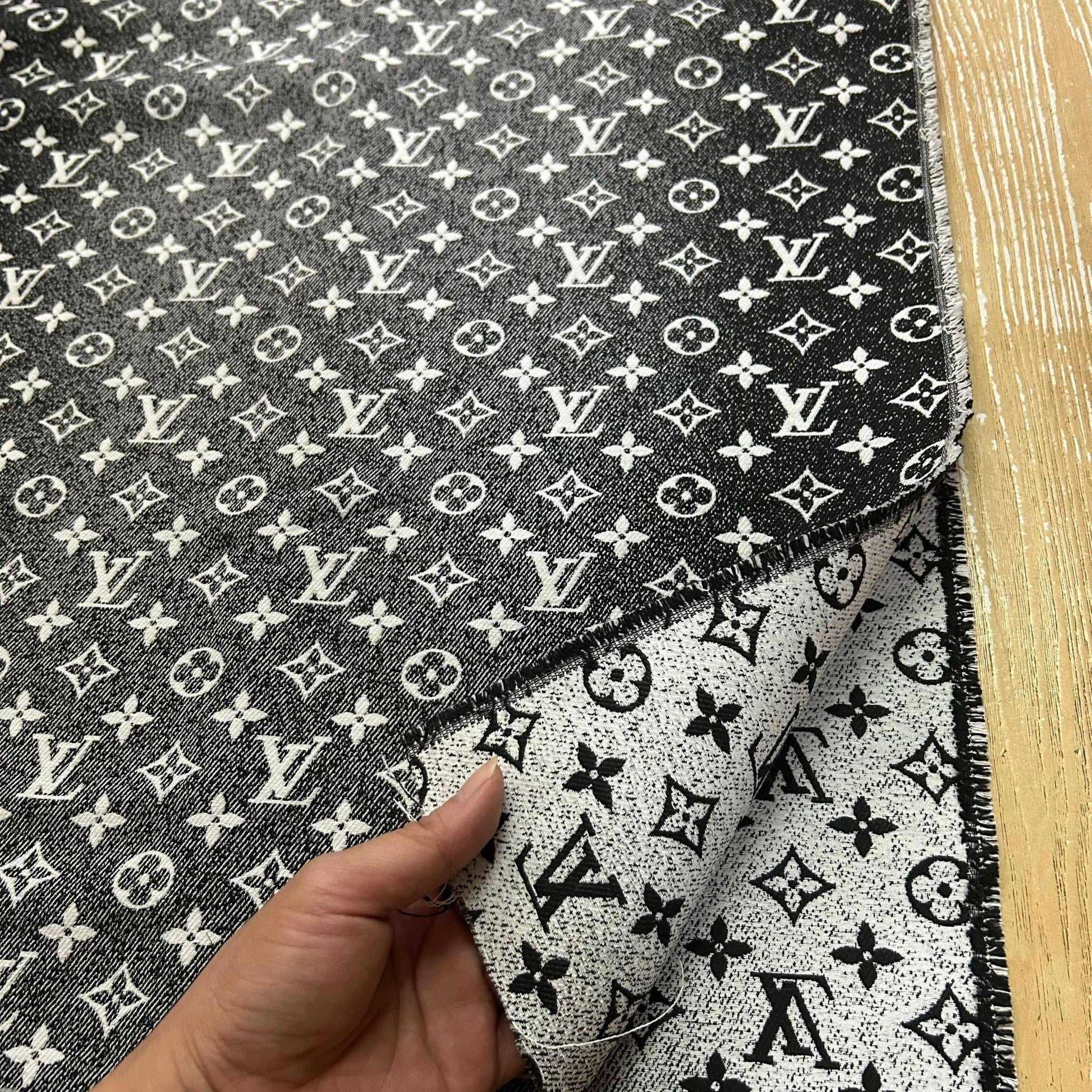 Designer Inspired LV Monogram Jacquard Denim Fabric, stone washed effect white on grey, strong and durable, medium to thick, suitable for clothing, crafting and upholstery, ideally for suit, jumpsuit, jacket, pants, cushion, curtain, sofa, home decor....