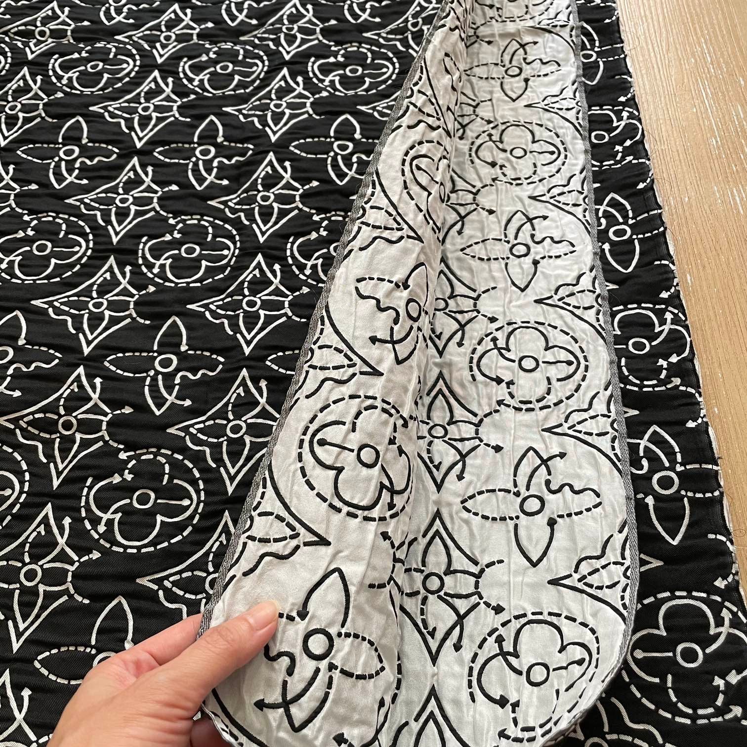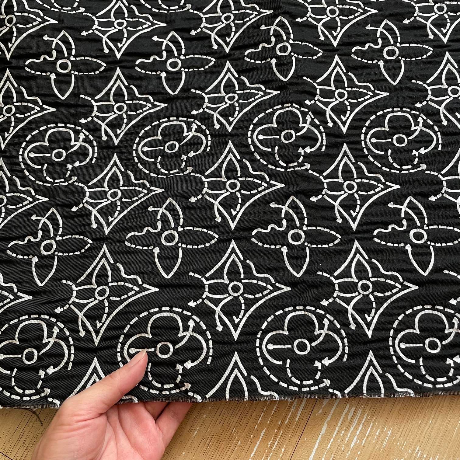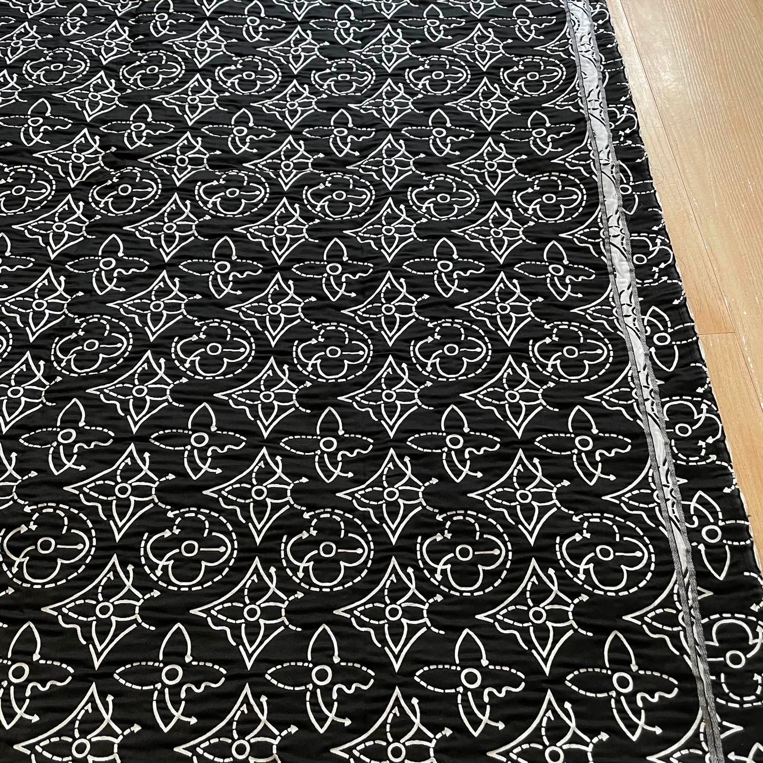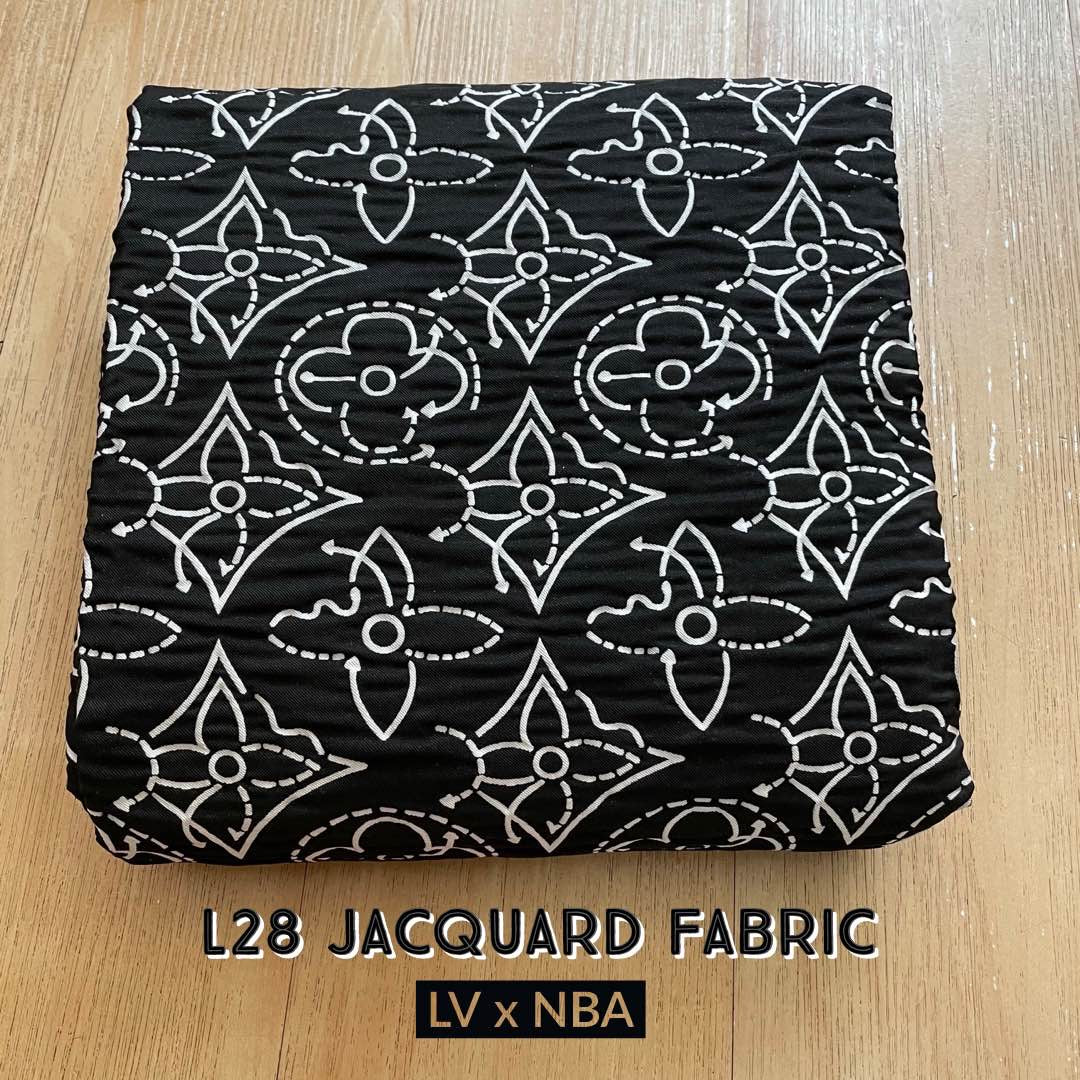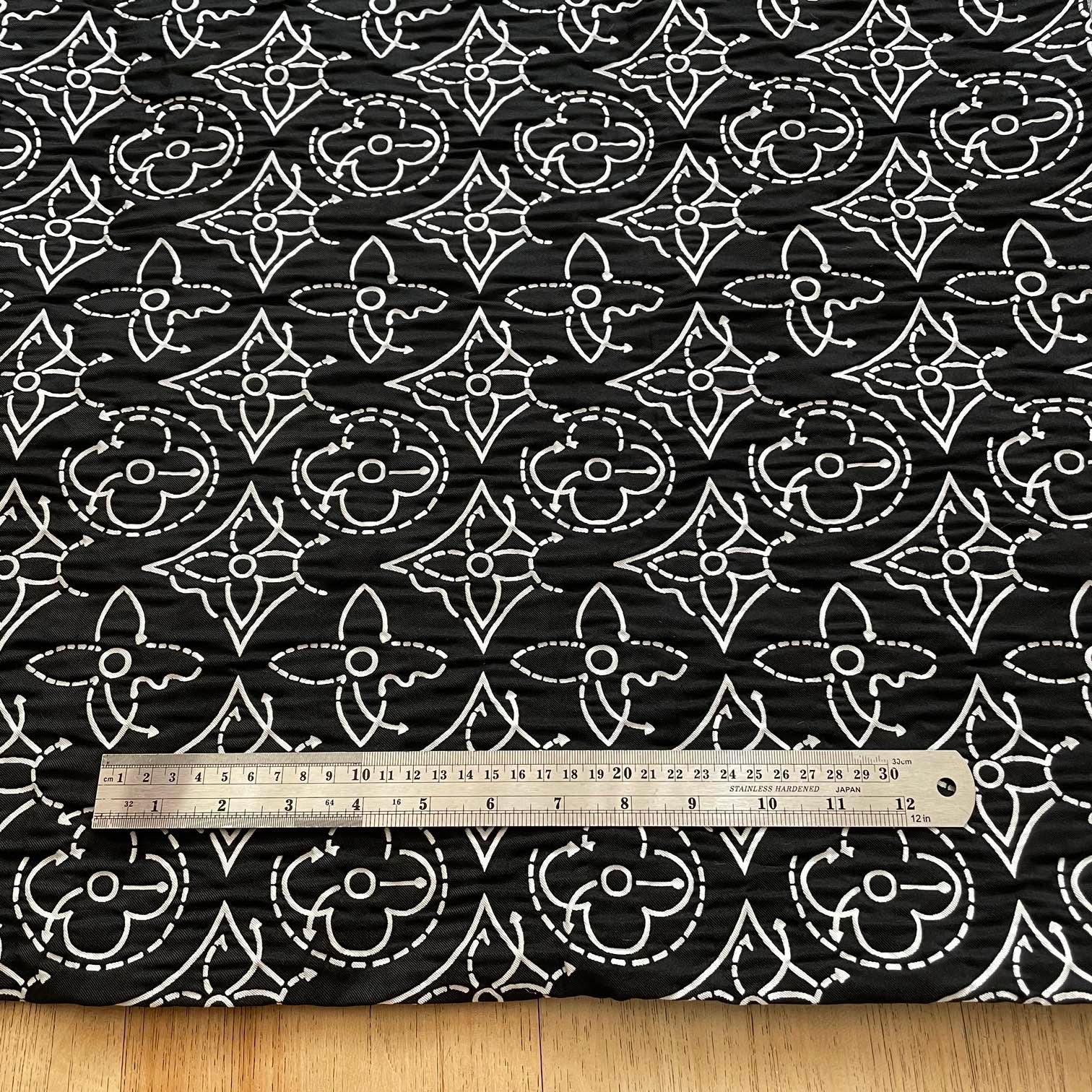 Designer Inspired Jacquard Fabric LVxNBA Strategic Flowers Quilted, black and white double layers with monogram stitching, suitable for clothing, crafting and upholstery : good for jacket, tracksuit, coat, cushion, curtain, sofa, home decor....